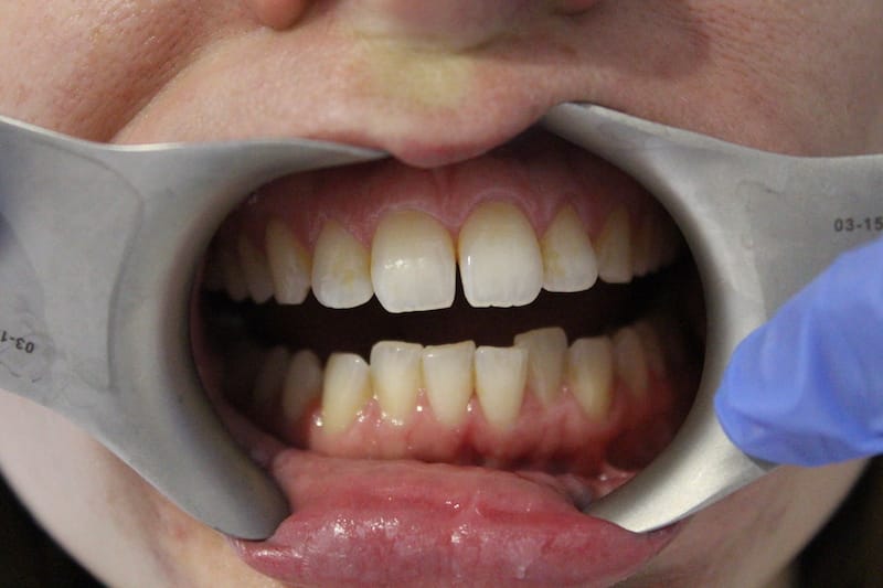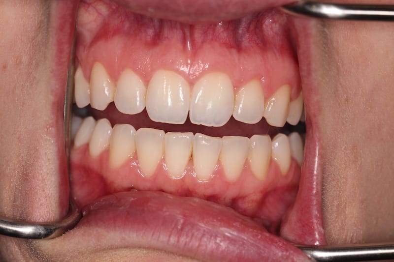 Crowded teeth, narrow smile